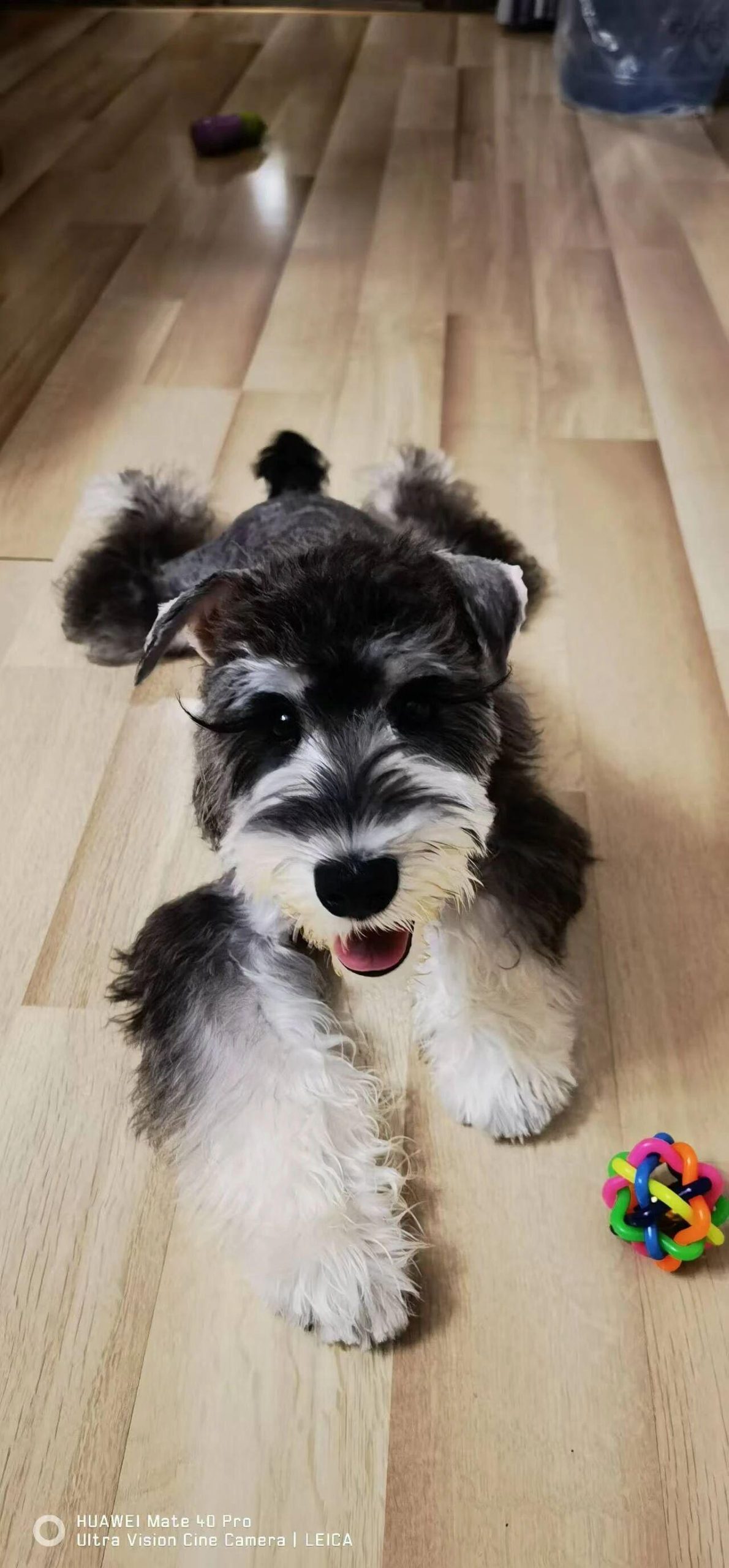 在这幅作品中,我们看到了一只可爱的小狗趴在光滑的木地板上,旁边有一个色彩斑斓的玩具球。狗狗的表情活泼而生动,仿佛在向我们展示它的快乐和无忧无虑。这幅画面不仅捕捉了宠物生活中的温馨瞬间,也激发了人们对简单快乐的向往。