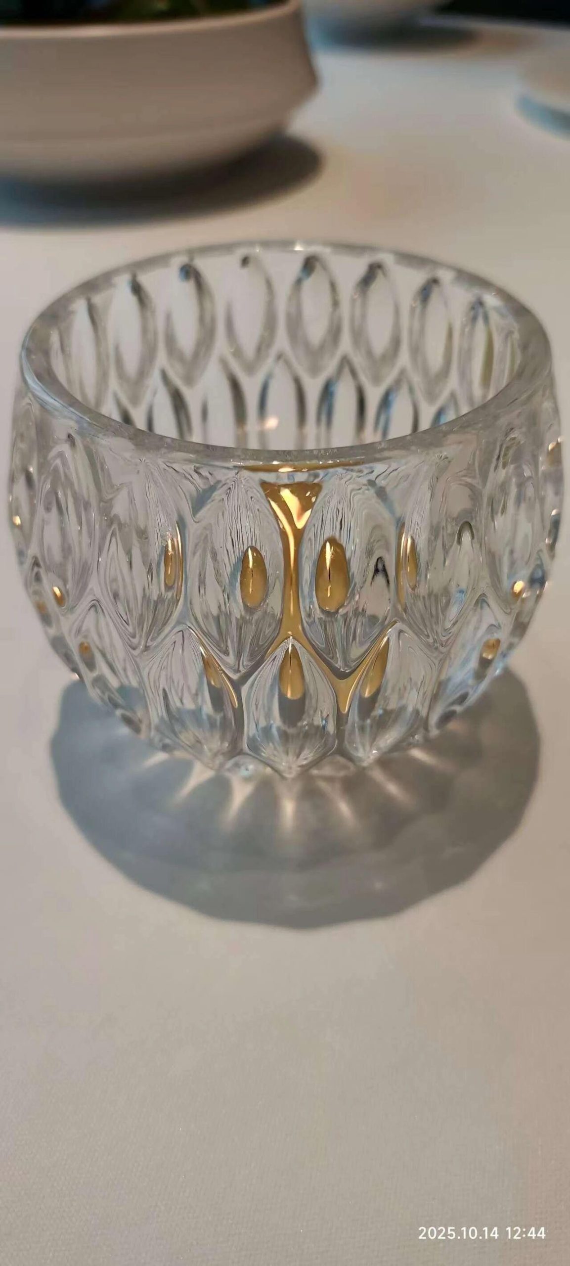 在这幅静物摄影作品中,水晶玻璃碗以其精美的设计和光影效果吸引了观者的目光。玻璃的透明质感与金色的装饰相得益彰,形成了鲜明的对比,使作品显得既现代又经典。创作者通过运用模糊的背景和柔和的光线,成功地突出了碗的细节和质感。光线在玻璃表面形成的影像变化,赋予了作品一种动态的生命力,仿佛在静止中传递着时间的流动。为了进一步提升作品的艺术价值,可以考虑引入更多的背景元素,如自然光或其他装饰物品,以丰富画面的层次感和故事性。通过这样的处理,观者不仅能欣赏到玻璃本身的美感,还能感受到作品所传达的优雅与高贵。