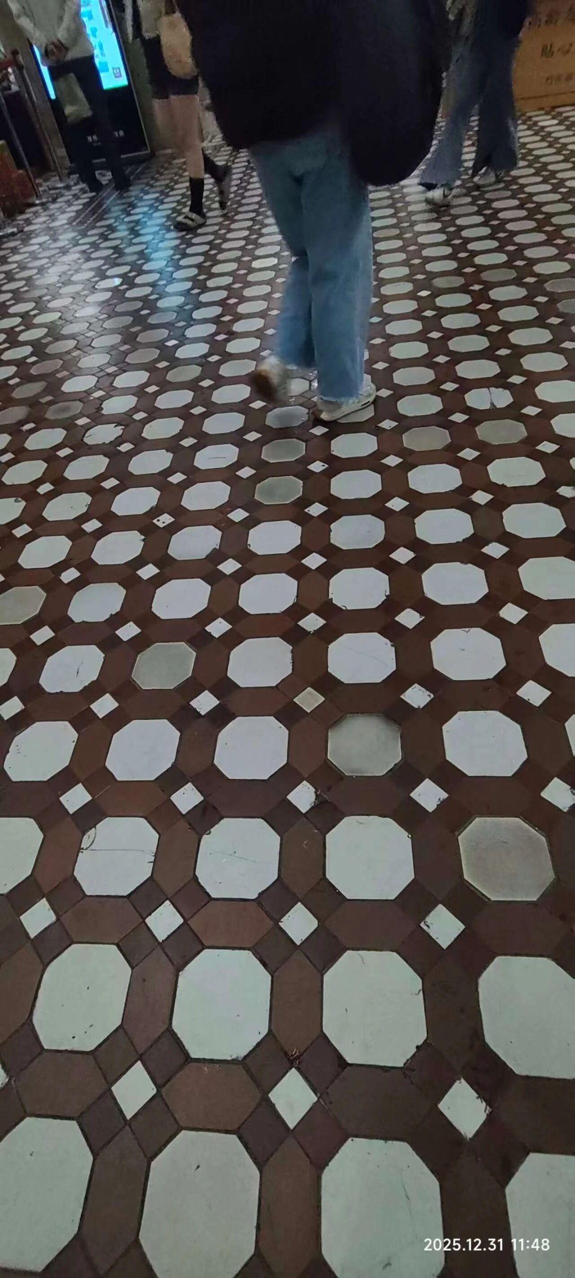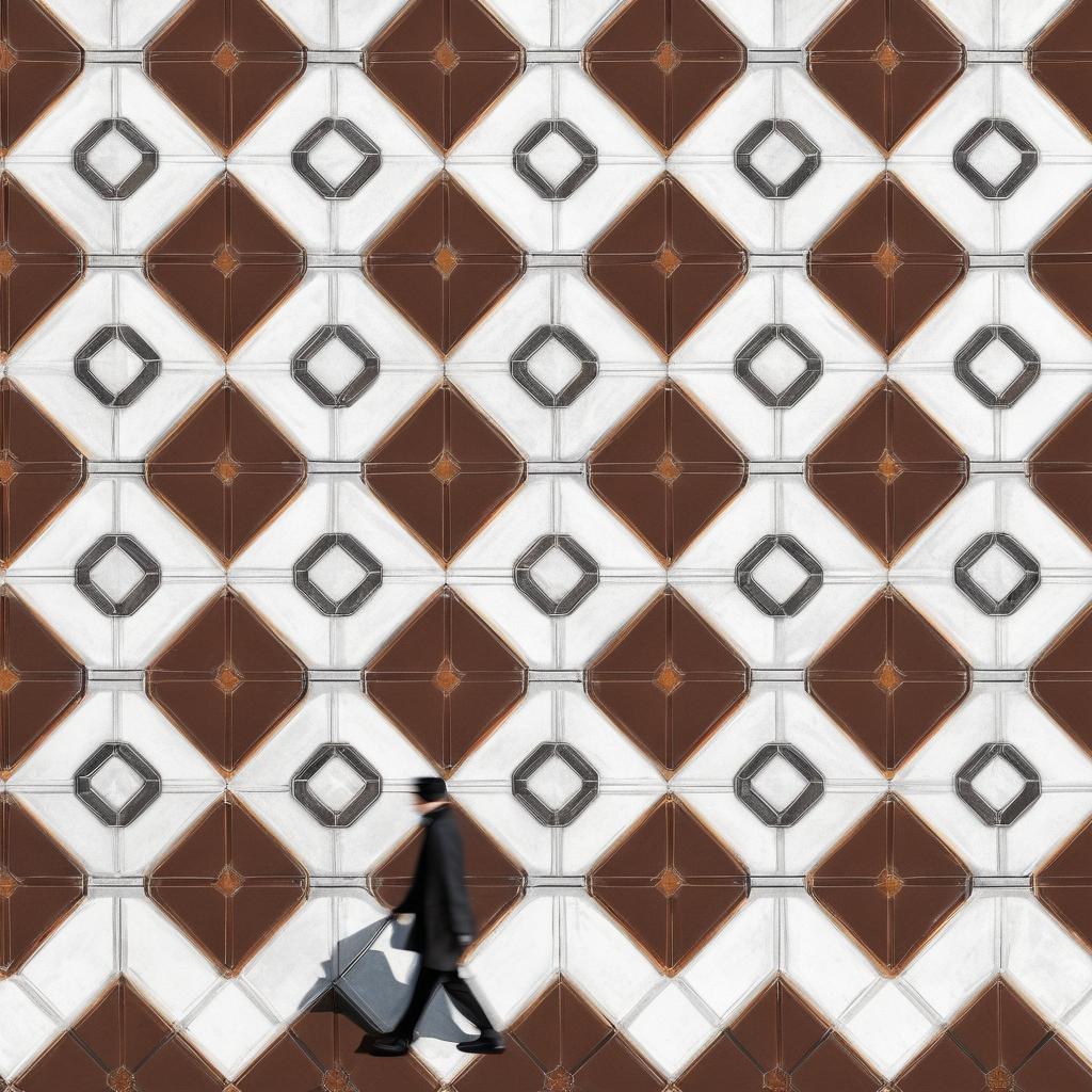 在这幅作品中,我们可以看到一种充满几何美感的地板设计。它不仅仅是地面上的图案,更是一种艺术表现形式。地板上的八边形与方形通过精妙的排列,形成了一种视觉上的和谐美。这种设计让人联想到古典建筑中的马赛克地面,带有浓厚的复古气息。画面中人物的存在,为这幅作品增添了动态的生活气息,仿佛在诉说着城市生活的点滴。为了进一步提升作品的表现力,可以尝试在图案中引入更多的色彩变化,或者通过光影的运用,增强地板的立体感和层次感。同时,通过慢速快门技术捕捉人物的模糊运动,可以更好地表现时间的流逝,赋予作品更多的故事性和艺术深度。这样的创作方式,将使作品在艺术领域中更具辨识度和情感共鸣。