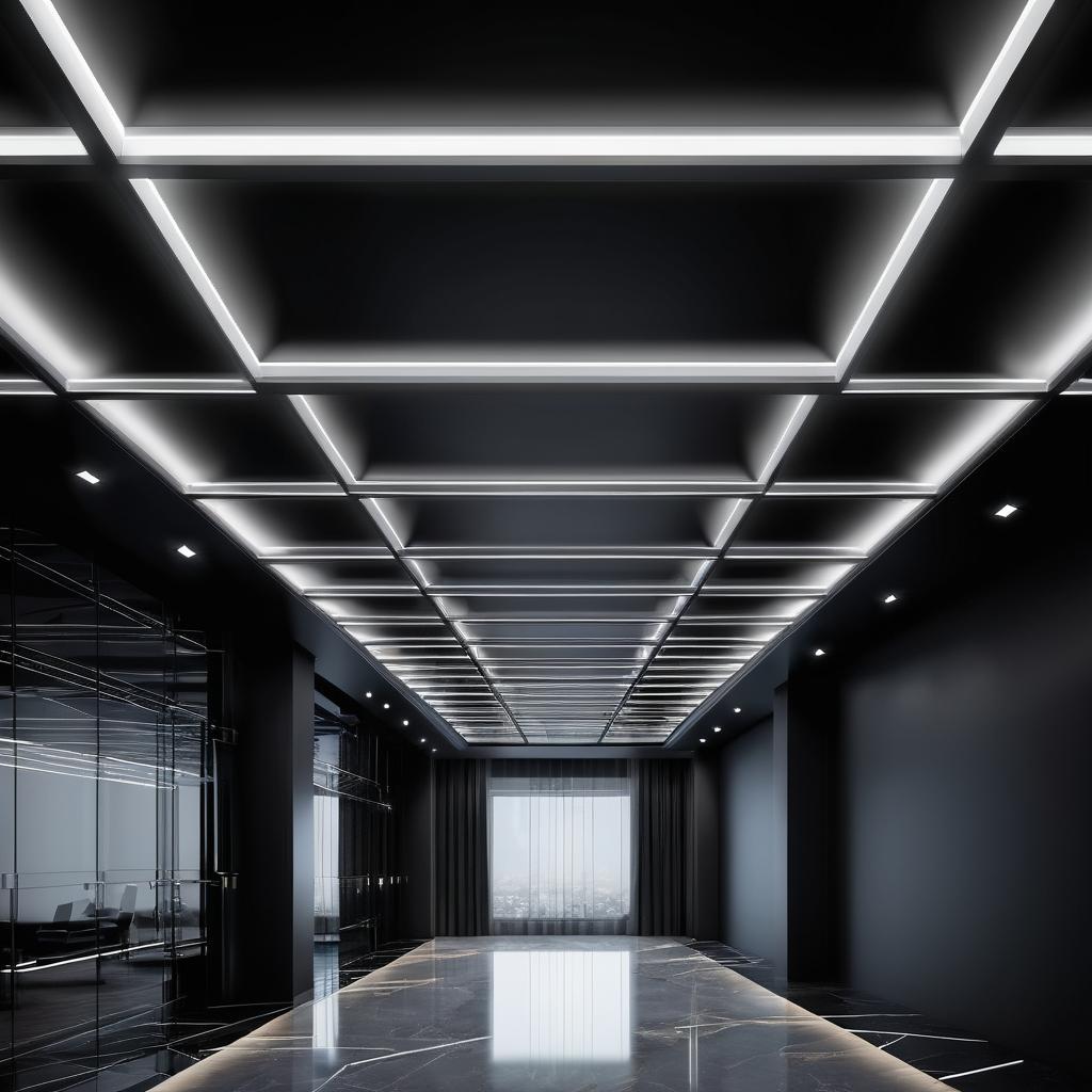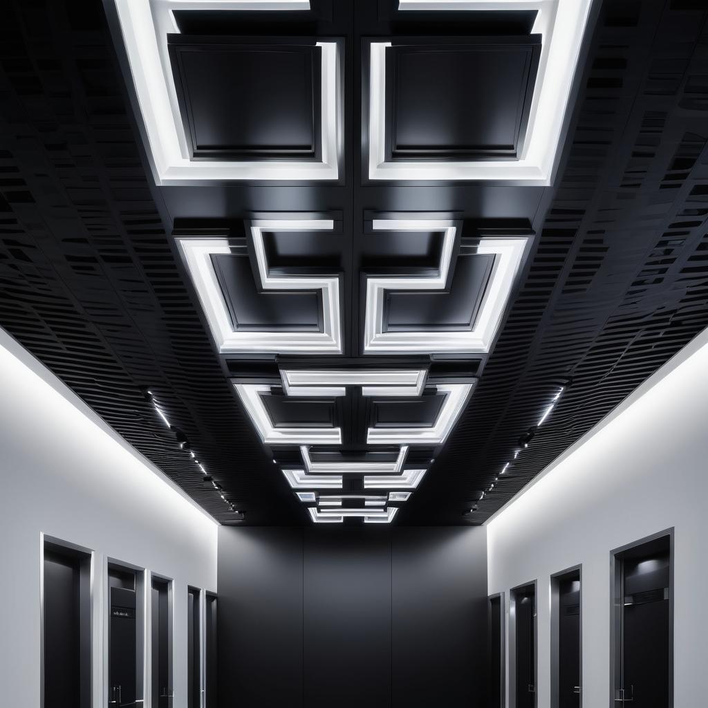 现代建筑以其简约和功能性而著称,而这幅作品正是这一风格的完美体现。图片中,几何形状的方形灯具排列在天花板上,形成了一种独特的美感。这种设计不仅在视觉上引人注目,同时也传达出一种现代科技感。建筑艺术分析师指出,通过在灯光颜色上加入变化,例如引入暖色调,可以进一步丰富作品的情感表达。此外,在灯具周围天花板上的装饰性细节,如线条或纹理,将为作品增添层次感,使其在视觉上更加引人入胜。这些调整将使作品在现代建筑艺术领域中更具辨识度和吸引力,成为一件能够激发思考与情感共鸣的艺术品。通过这样的设计思路,不仅提升了作品的艺术价值,也为现代建筑设计提供了新的灵感和方向。